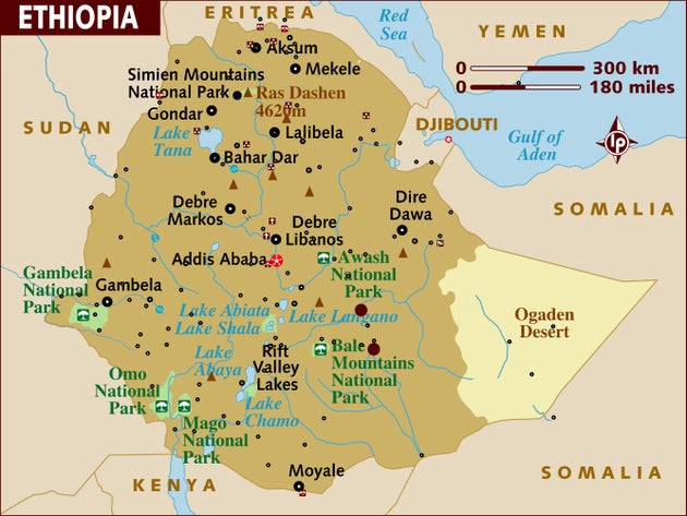 LONELY PLANET/GETTY IMAGESA map of Ethiopia, which shows the capital of Addis Ababa. The Oromia region makes up two-thirds of the country, and surrounds the capital.